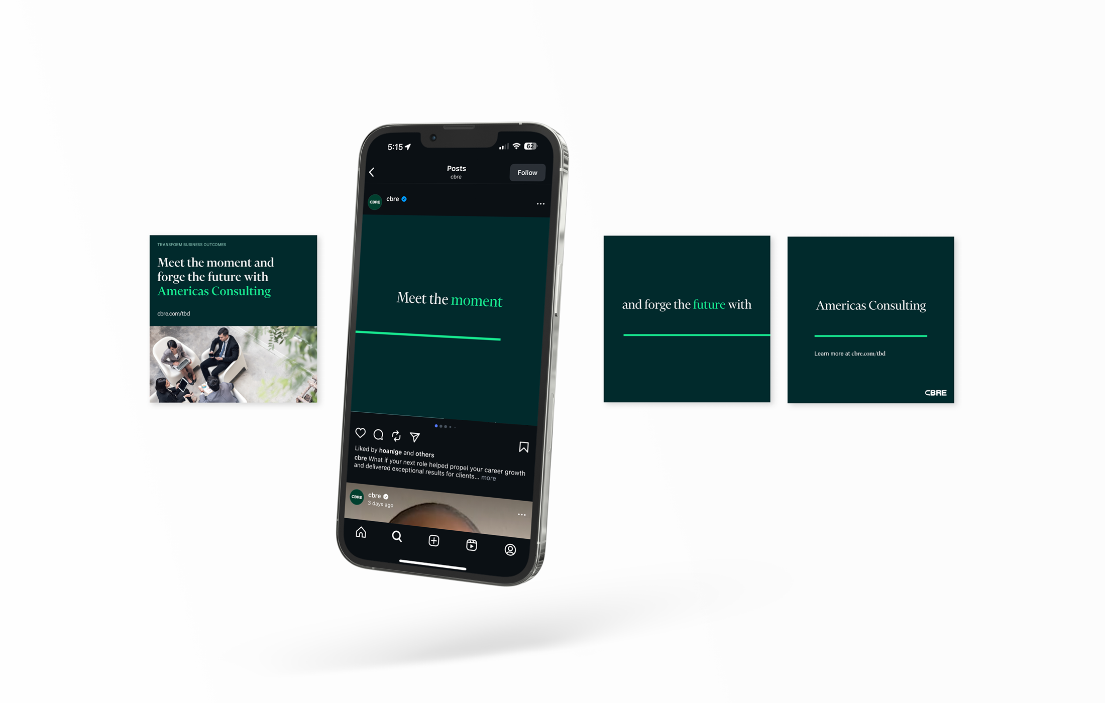 As a Senior Graphic Designer at CBRE, the world’s largest commercial real estate services and investment firm, I led the conceptualization and delivery of strategic visual solutions that elevated marketing and business development across global channels and audiences. I was the main designer on the Americas Consulting team who worked closely with managing directors and brokers. My work balanced CBRE’s brand standards with custom client-focused design, seamlessly managing projects from initial brief to final production. I collaborated with cross-functional teams and external partners to translate complex business goals and client insights into compelling branded content, presentations, and campaign materials.